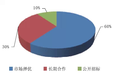 通過(guò)調(diào)研,所調(diào)查參與者單位對(duì)固體絕緣環(huán)網(wǎng)柜產(chǎn)品通過(guò)市場(chǎng)擇優(yōu)的占比60%;長(zhǎng)期合作的占比30%;聯(lián)盟無(wú);公開(kāi)招標(biāo)的占比10%。具體如下圖3所示。