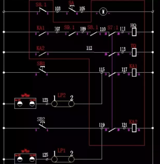 因?yàn)殡姎馕宸溃院祥l回路通過(guò)的輔佐觸點(diǎn)較多,常見(jiàn)的輔佐觸點(diǎn)方位有①下門(mén)輔佐觸點(diǎn)(只要在電纜室門(mén)關(guān)好的情況下該回路的常開(kāi)輔佐觸點(diǎn)才干變?yōu)槌i]狀況)
