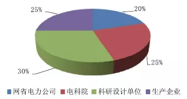 本著為電力行業(yè)打開效力的繩尺,本次查詢網(wǎng)省電力公司占比20%,電科院占比25%,科研規(guī)劃單位占比30%,消費(fèi)企業(yè)占比25%。如圖1 所示。