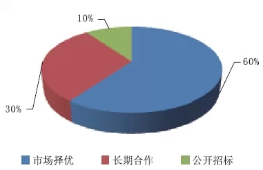 經(jīng)過調(diào)研,所查詢參與者單位對(duì)固體絕緣環(huán)網(wǎng)柜產(chǎn)品經(jīng)過市場(chǎng)擇優(yōu)的占比60%;長(zhǎng)時(shí)間協(xié)作的占比30%;聯(lián)盟無;公開投標(biāo)的占比10%。具體如下圖3所示。