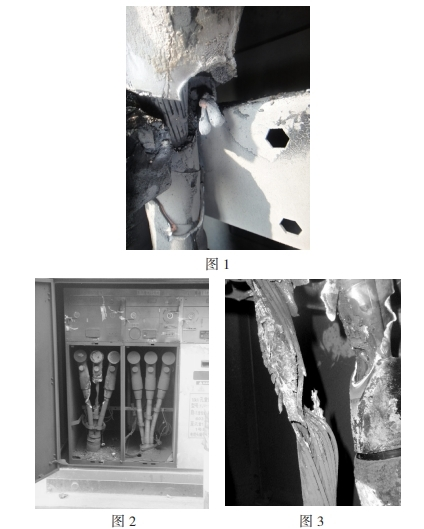 2008年3月24日,回南天,富灣站富油乙線速斷跳閘,位于戶(hù)外的一臺(tái)電纜分支箱產(chǎn)生短路爆破(如圖1),601開(kāi)關(guān)出線電纜倉(cāng)門(mén)嚴(yán)峻熏黑,翻開(kāi)后發(fā)現(xiàn)A相電纜終端應(yīng)力錐焚毀,纜芯熔損,初步剖析主要為施工工藝粗糙,構(gòu)成電纜終端電場(chǎng)畸變嚴(yán)峻,一起纜身緊靠固定用金屬支架,在箱內(nèi)潮濕環(huán)境下產(chǎn)成長(zhǎng)時(shí)刻閃絡(luò)放電,畢竟絕緣破損接地短路,將出線套管炸壞,構(gòu)成氣室漏氣,分支箱報(bào)廢。