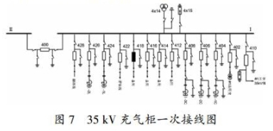在某變電站結(jié)合新投設(shè)備初度停電檢修時對35kV充氣柜進(jìn)行了例行實驗,包含交流耐壓實驗、回路電阻查驗和斷路器機(jī)械特性查驗。35 kV充氣柜一次接線圖如圖7所示。