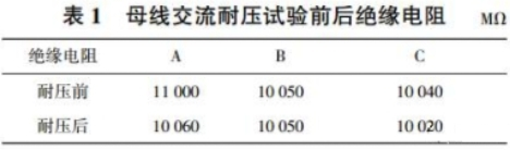 從耐壓實驗進(jìn)程和表1絕緣電阻數(shù)據(jù)來看,該35kV 充氣柜母線耐壓實驗合格。