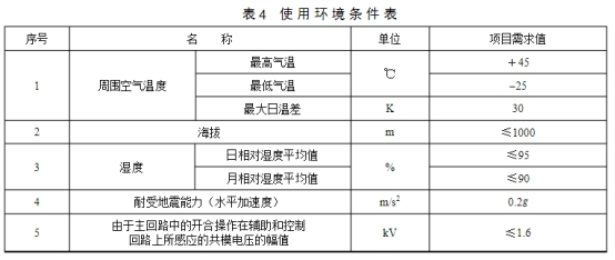 4運(yùn)用環(huán)境條件表低壓電纜分支箱運(yùn)用環(huán)境條件見(jiàn)表4。特別環(huán)境要求依據(jù)項(xiàng)目狀況進(jìn)行編制。